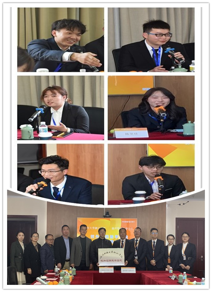 随后,校企双方就基地共建展开了交流。钱春平介绍了温州银行股份有限公司金华分行的发展历程、服务领域、人才需求以及培养机制等情况。希望深化校企合作领域,创新人才培养模式,形成合作融入、互惠共赢的良好局面。邱风介绍了学院的发展概况、专业设置、团队力量、人才招聘等情况,例举了学院在应用型本科建设方面的重要举措,希望通过整合校企双方优势资源,为员工提供更多实践机会,提高员工实践能力,实现育人、用人的“一体化”,同时也希望借助实务精英进课堂、教师下企业锻炼等方式,提升教师实践教学水平。金融系徐旭水介绍了金融系基本情况,希望拓展校企合作平台,丰富双方合作内容,服务地方经济发展。郑伟俊指出通过企业文化宣传、企业导师帮带等形式,能让员工更快融入企业环境,要以实习带动就业,实现留金率提升。朱艳表示希望通过员工实习实践、开展企业开放日、教师下企业锻炼、实务精英进课堂、实践课程开发、产业学院建设等形式开展银校深度合作,提高人才培养质量,创造更大社会效益。